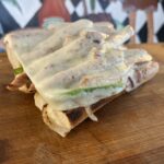 Thin slices of steak served on a toasted French roll with sautéed onions, peppers and mushrooms topped with melted mozzarella.